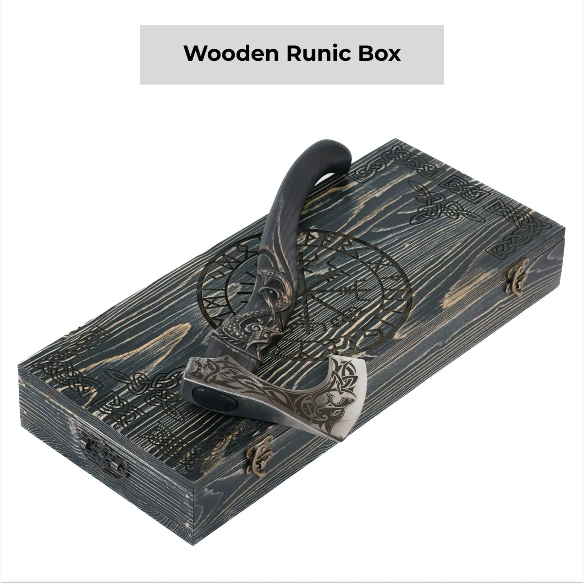 🪓Ručno kovana vikinška sjekira s rezbarenom drškom (poklon kutija sa stalkom)